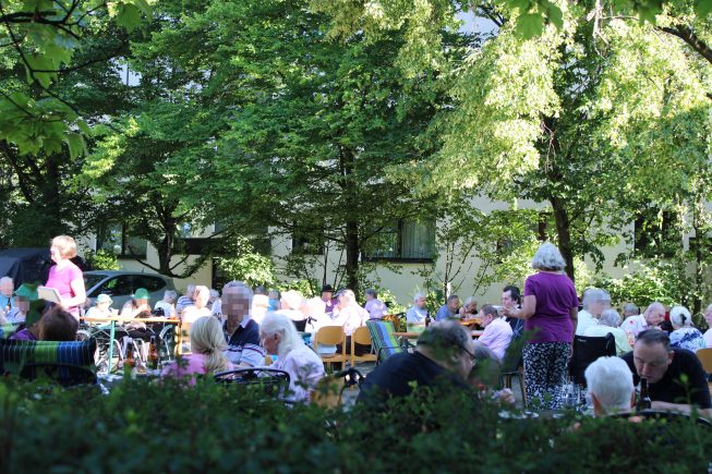 Unsere Bewohner und Angehörigen genossen in angenehmer Atmosphäre, die Spezialitäten, die unser Küchenteam kreiert hatte, darunter verschiedene Salate, Würstchen und Steaks.